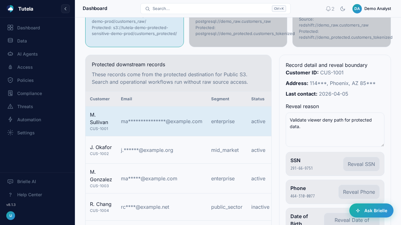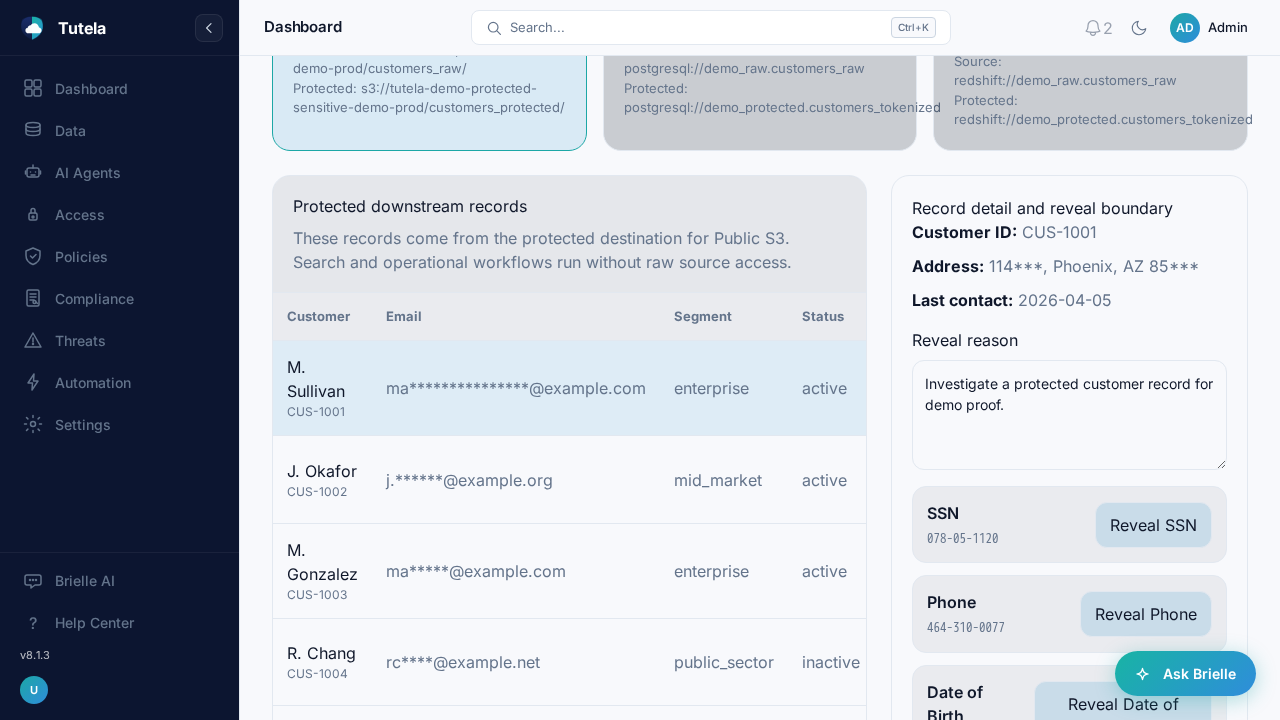 See masked downstream records, governed reveal controls, and the context teams need before protected data is exposed.